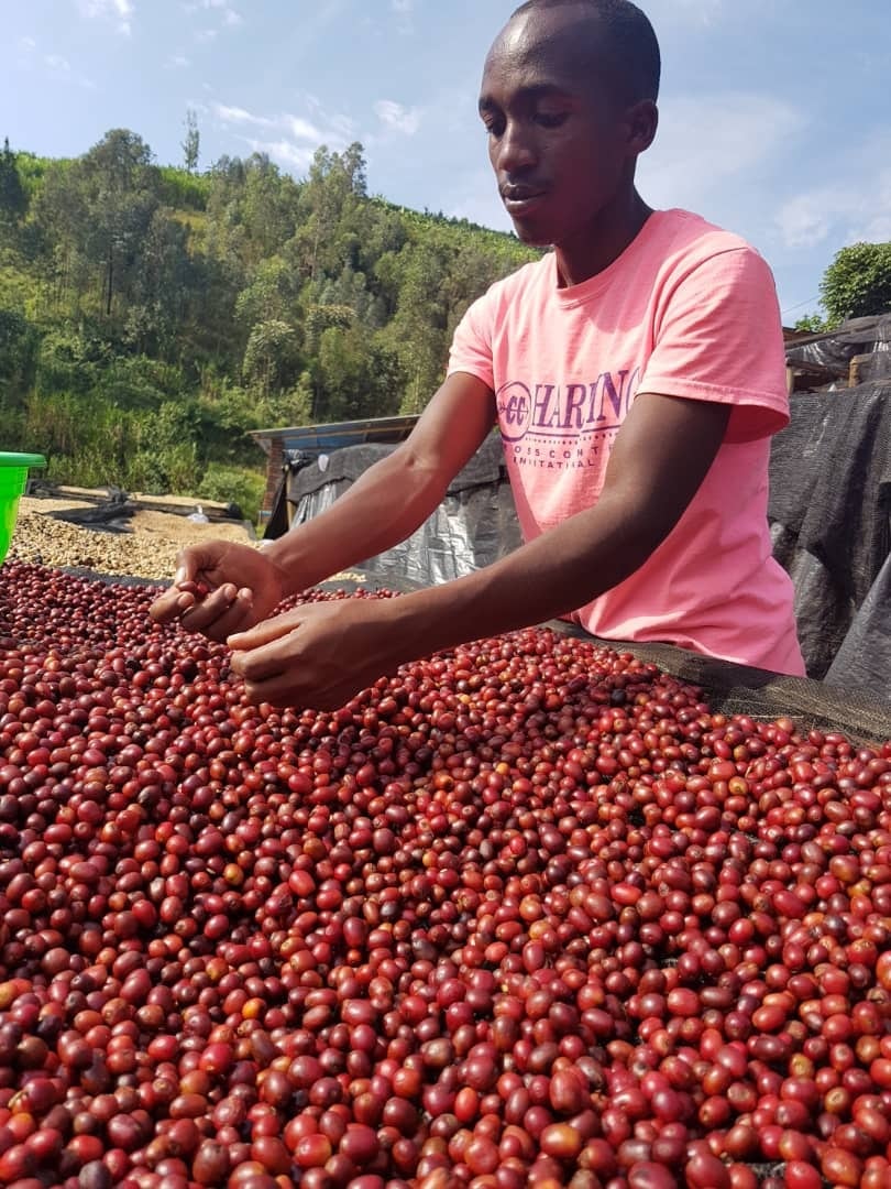 今回入荷した「カビナナ・ヒル」はマチアゾ生産者組合のコーヒーです。西部州自体はコーヒー生産の盛んな地域ですが,その中でンゴロレロ郡はあまり注目されることのないエリアでした。しかしながら農地の最後部では標高2,800mを超える超高地であることなどから,非常にポテンシャルの高い産地であることが分かりました。こうした環境から,比較的柔らかい豆質の多いルワンダでは珍しく硬い豆質とボディ感のあるエレガントな味わいが生み出されています。今後がより楽しみなエリアです。